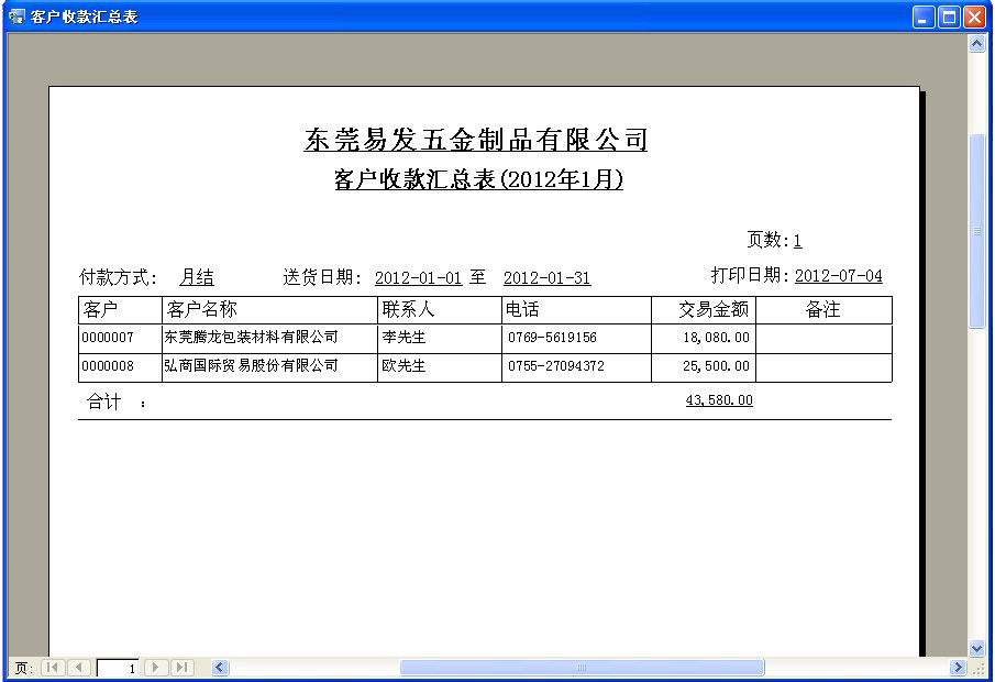 客户统计报表 - 打印客户的交易记录和金额汇总